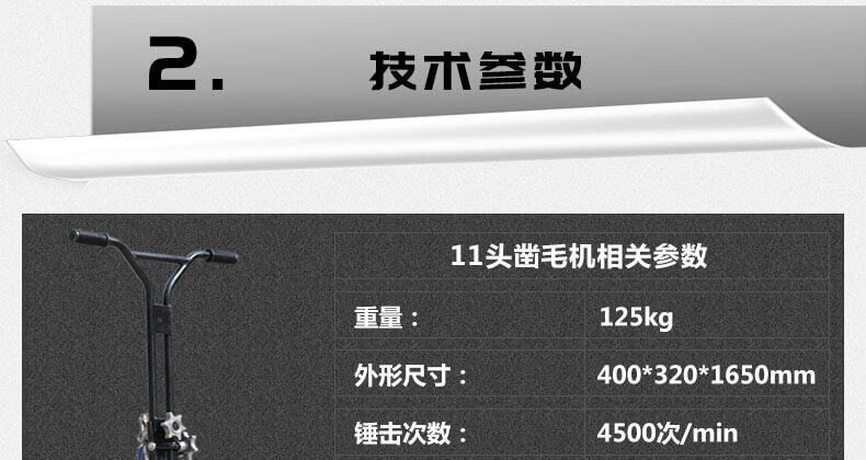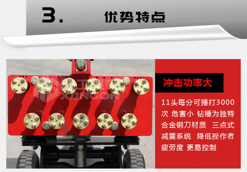 1、11個(gè)鑿毛頭的沖擊功率大,可達(dá)2200blow/分鐘,危害??;
